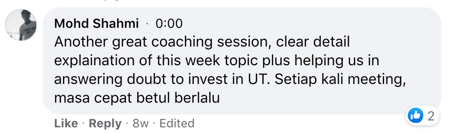 "Another great coaching session. Helping us in answering doubt to invest in UT."